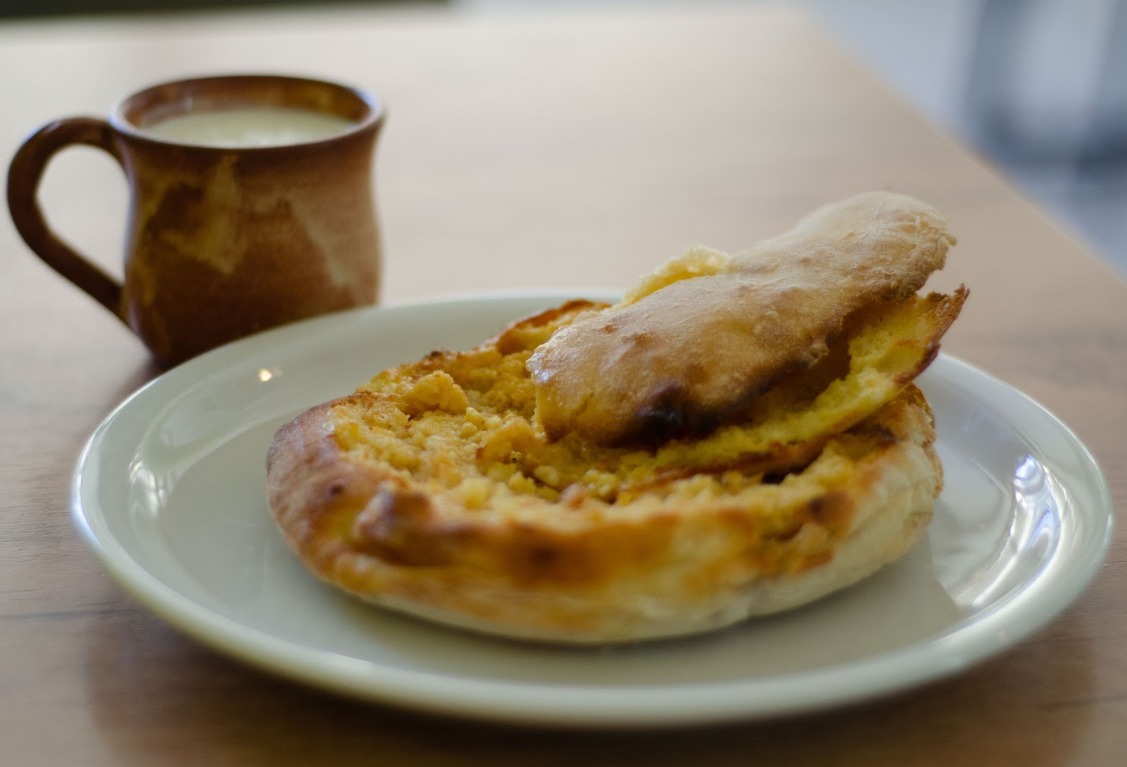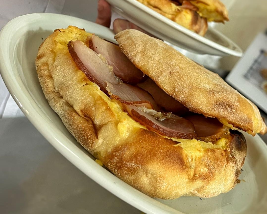 Hrskava lepinja sa pretopom, jajetom i pršutom po ukusu.