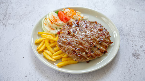Mekan i sočan teleći ribić savršeno se slaže sa bogatim sosom od kajmaka, pružajući savršenu kombinaciju nežnosti mesa i kremaste teksture sosa. Ovo jelo je pravi užitak za sve ljubitelje telećeg mesa, jer se meso priprema sa pažnjom i poslužuje u sočnom sosu koji naglašava njegov prirodni ukus.